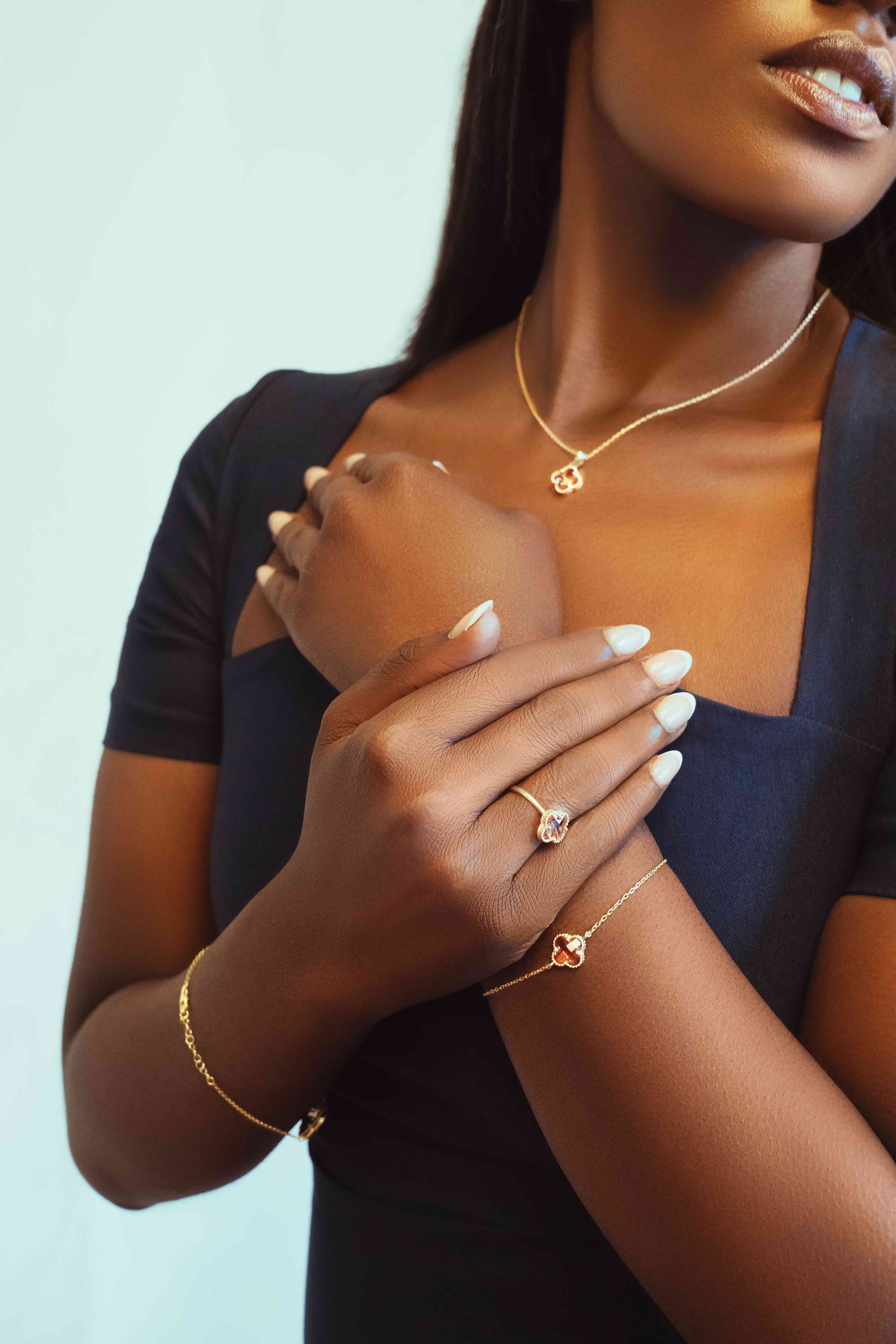 The Clover Muse Petite Zultanite Ring is a rare piece for women who see beauty in change. Set with the remarkable Zultanite gemstone, it captures the magic of transformation. In fluorescent light, it glows Kiwi Green. In candlelight, it blushes Lychee Pink. Under the warmth of the sun, it turns a soft Champagne Yellow. No two moments — or reflections — are ever the same. Each stone is ethically sourced from the Ilbir Mountains of Anatolia, Turkey, the only place on earth where Zultanite is found. Handcrafted in solid 925 Sterling Silver and finished in your choice of 14K Gold or White Rhodium, the clover silhouette represents balance, fortune, and feminine grace. It’s not just jewellery — it’s a quiet reflection of you… always evolving, always captivating. (Please note: natural variations and lighting may affect the appearance of colour. For an accurate view, refer to the product video.) Your browser does not support the video tag.