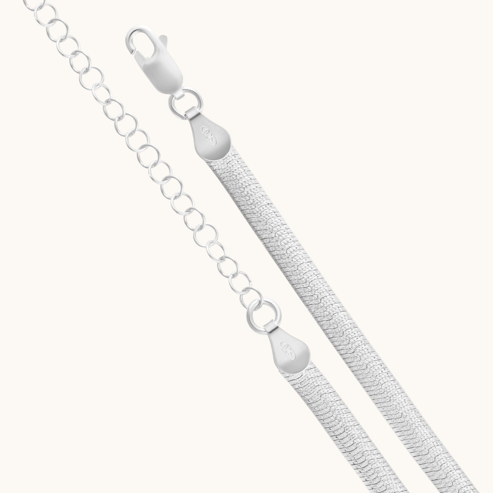 Each link is crafted from solid 925 Sterling Silver and finished in your choice of 14K Gold or White Rhodium for lasting brilliance. The smooth, fluid texture lies beautifully against the skin, catching light with every movement.