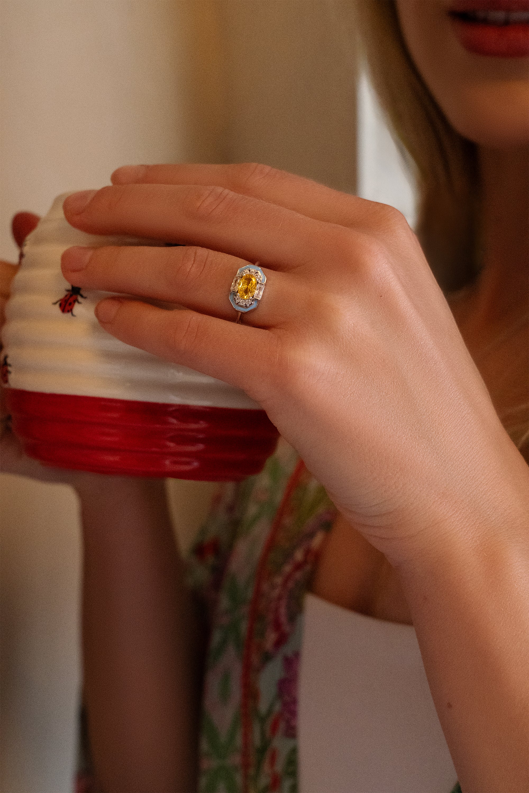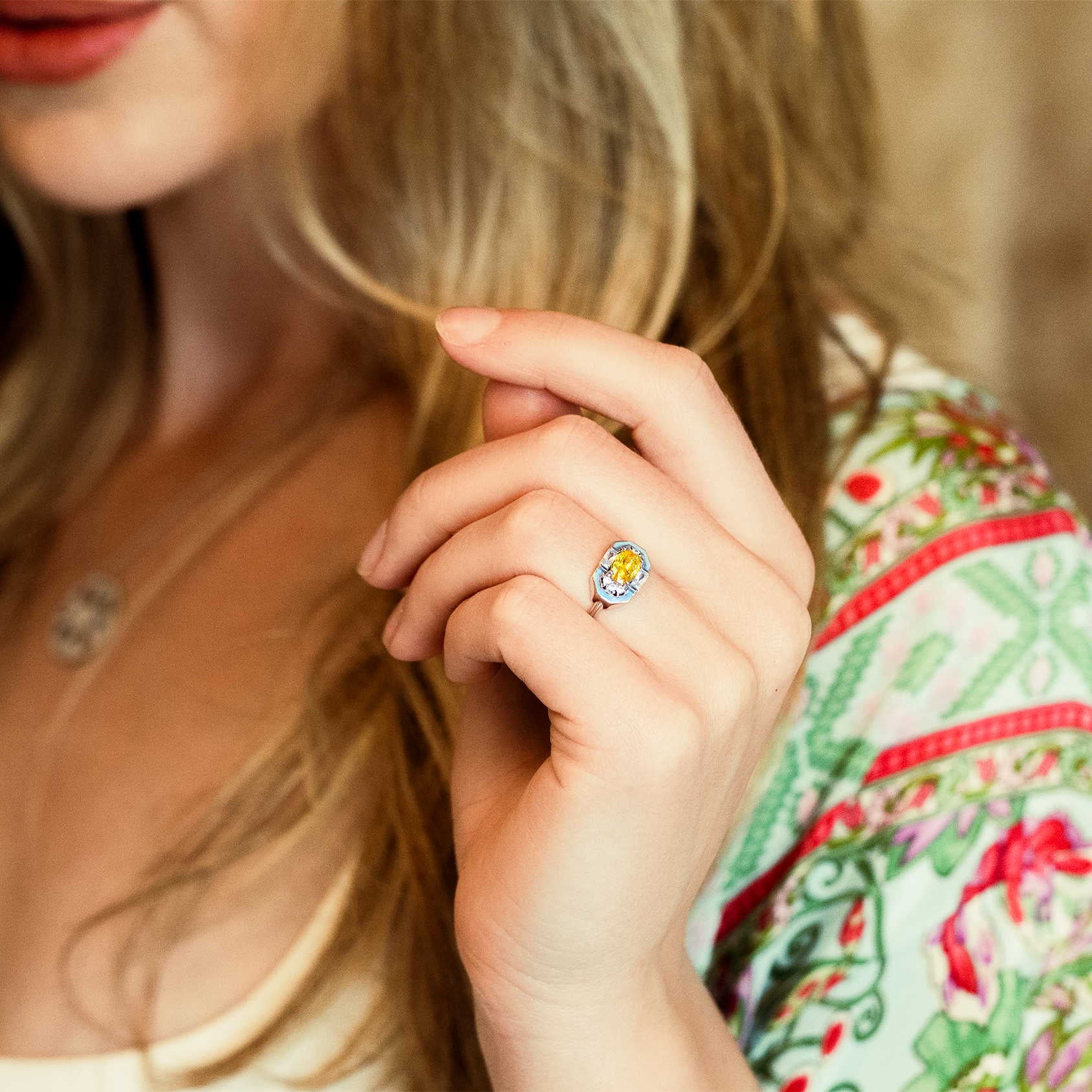 Imagine the warmth of the sun captured in a sparkling embrace, its glow mirrored in the vibrant hues of the natural world. This isn't just a fleeting moment of daylight, it's the soul of the Lena Citrine Ring. Crafted for the woman who is a beacon of light and joy, this piece is a testament to her undeniable radiance and vitality.