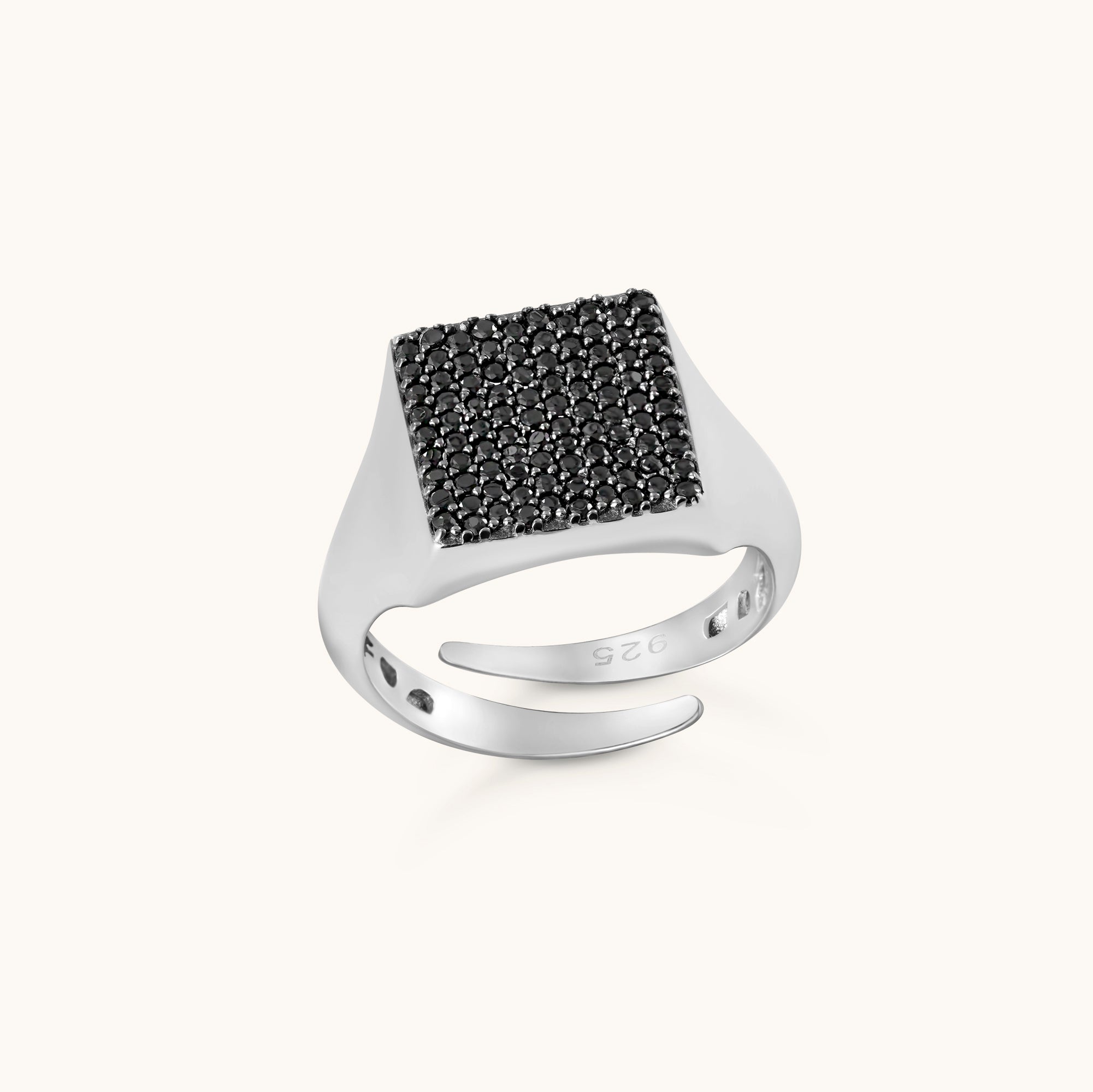 The Celeste Square Signet Ring redefines power through elegance. A modern take on the classic signet, its surface is set with bold black cubic zirconia, each stone reflecting depth and mystery under every light. The sculpted square silhouette commands attention without words — strong, structured, and unapologetically refined. Crafted from solid 925 Sterling Silver and finished in White Rhodium or Rose Gold for lasting brilliance, every curve and edge is polished by hand to mirror your inner precision. This is not jewellery made to follow trends.It’s designed for the woman who creates her own direction.