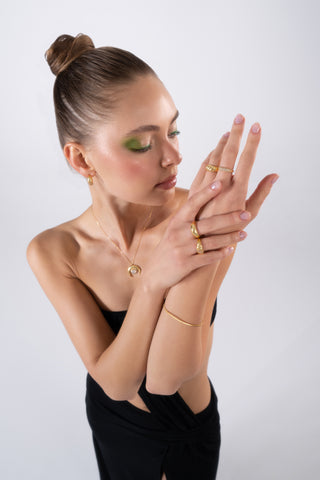 - Moisture and Chemical Exposure: Keep your jewelry dry and away from substances that can tarnish gold, such as sweat, bleach, and chlorine. Remove your jewelry when showering, exercising, or swimming.